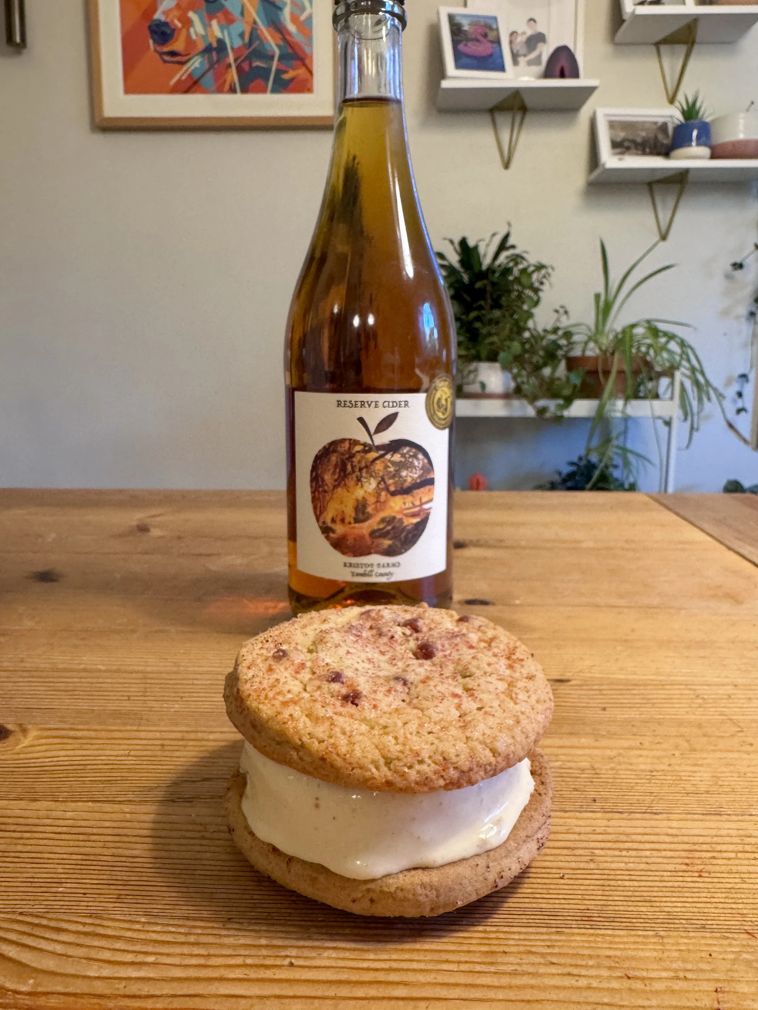 We took two of our favorite creations: Apple Cider + Raspberry Cookies and homemade Apple Cider Ice Cream and sandwiched them together for the ultimate summer treat. The result? A crisp-meets-creamy dessert with tart raspberry bursts, warm spice, and just enough oaky depth from our Kristof Farms Reserve Cider to keep things interesting.